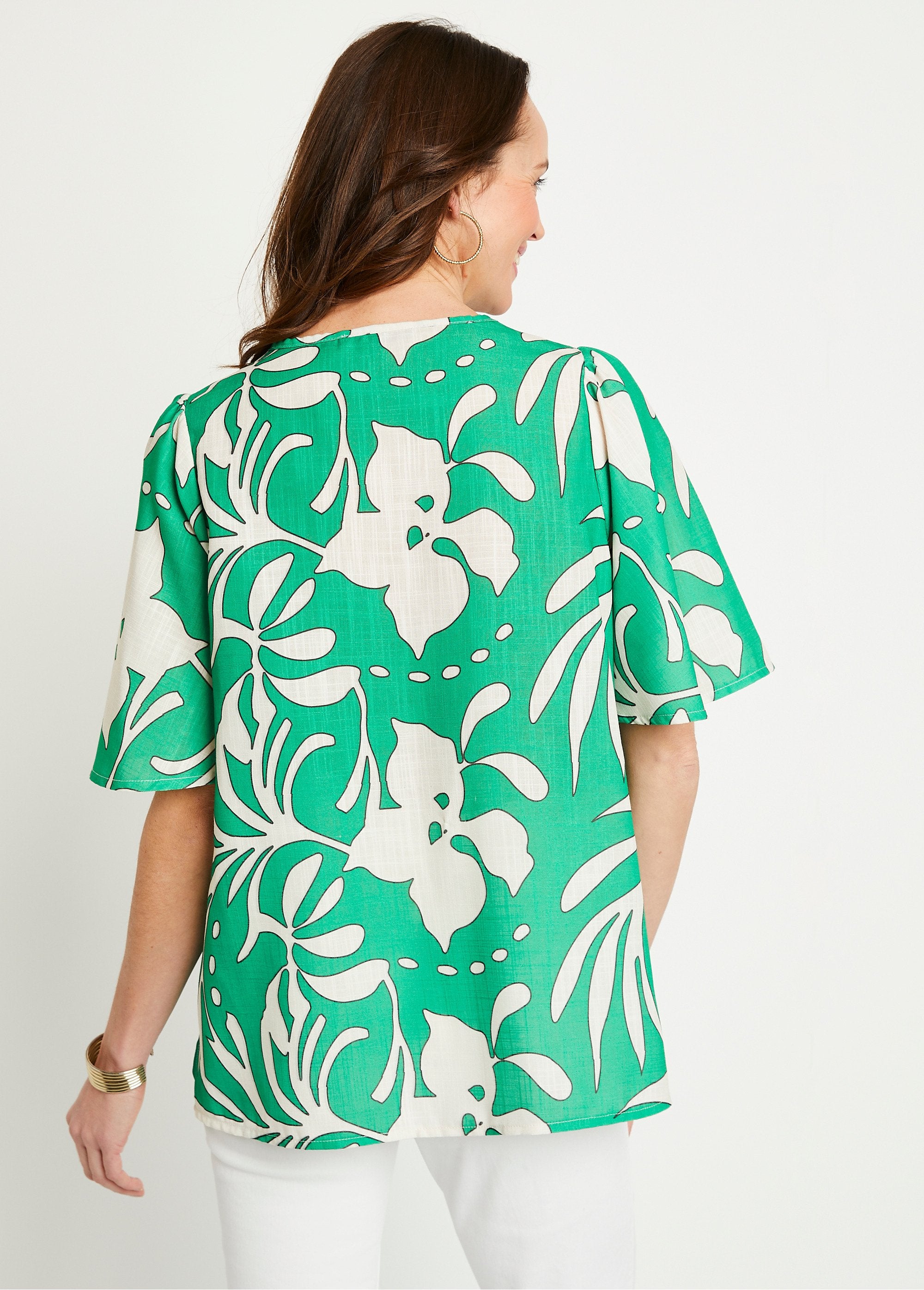 Short-sleeved_plant_print_V-neck_blouse_Multicolor_FA1_slim Short-sleeved_plant_print_V-neck_blouse_Multicolor_DO1_slim