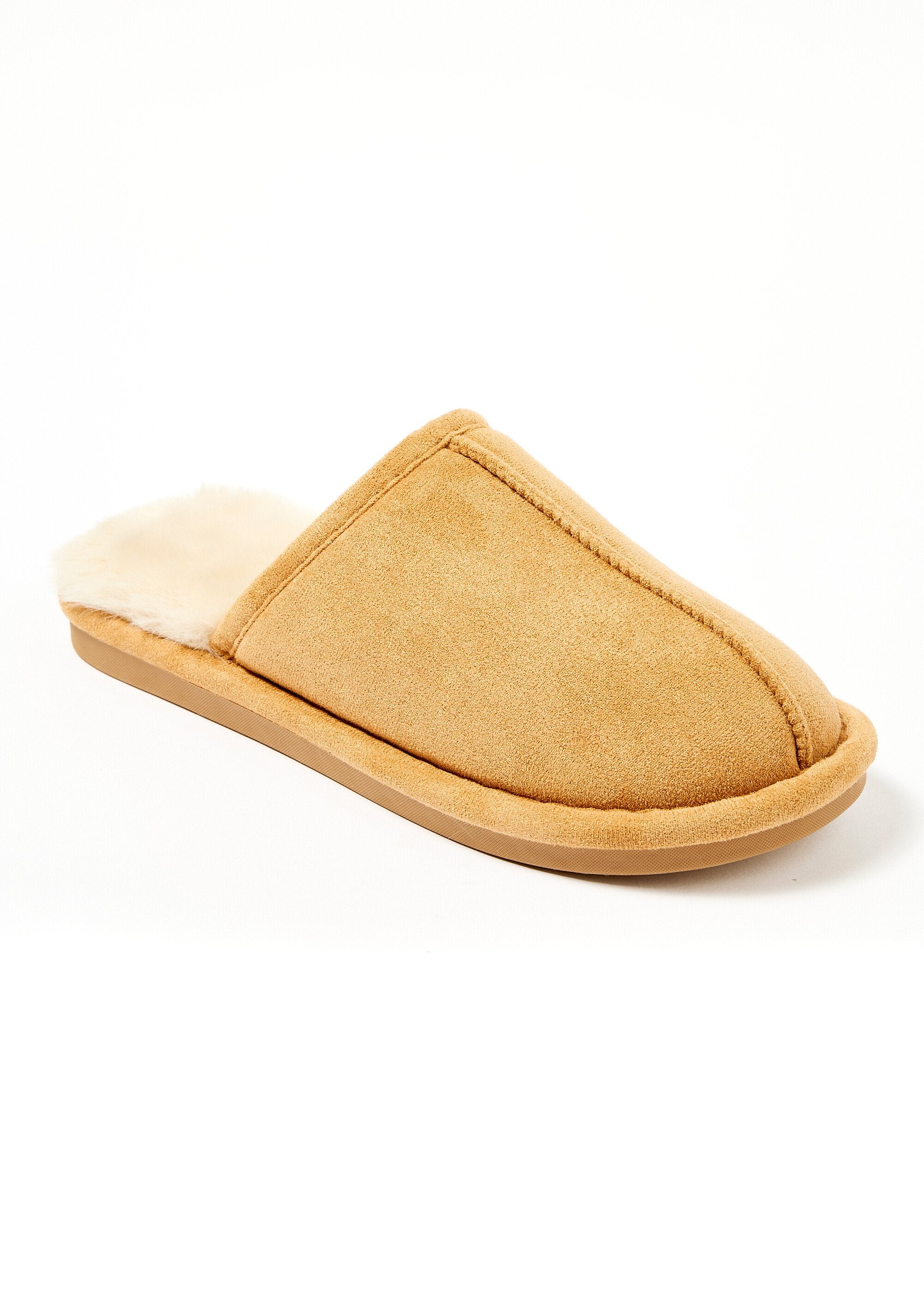 Warm fur-lined slippers with a leather look  camel