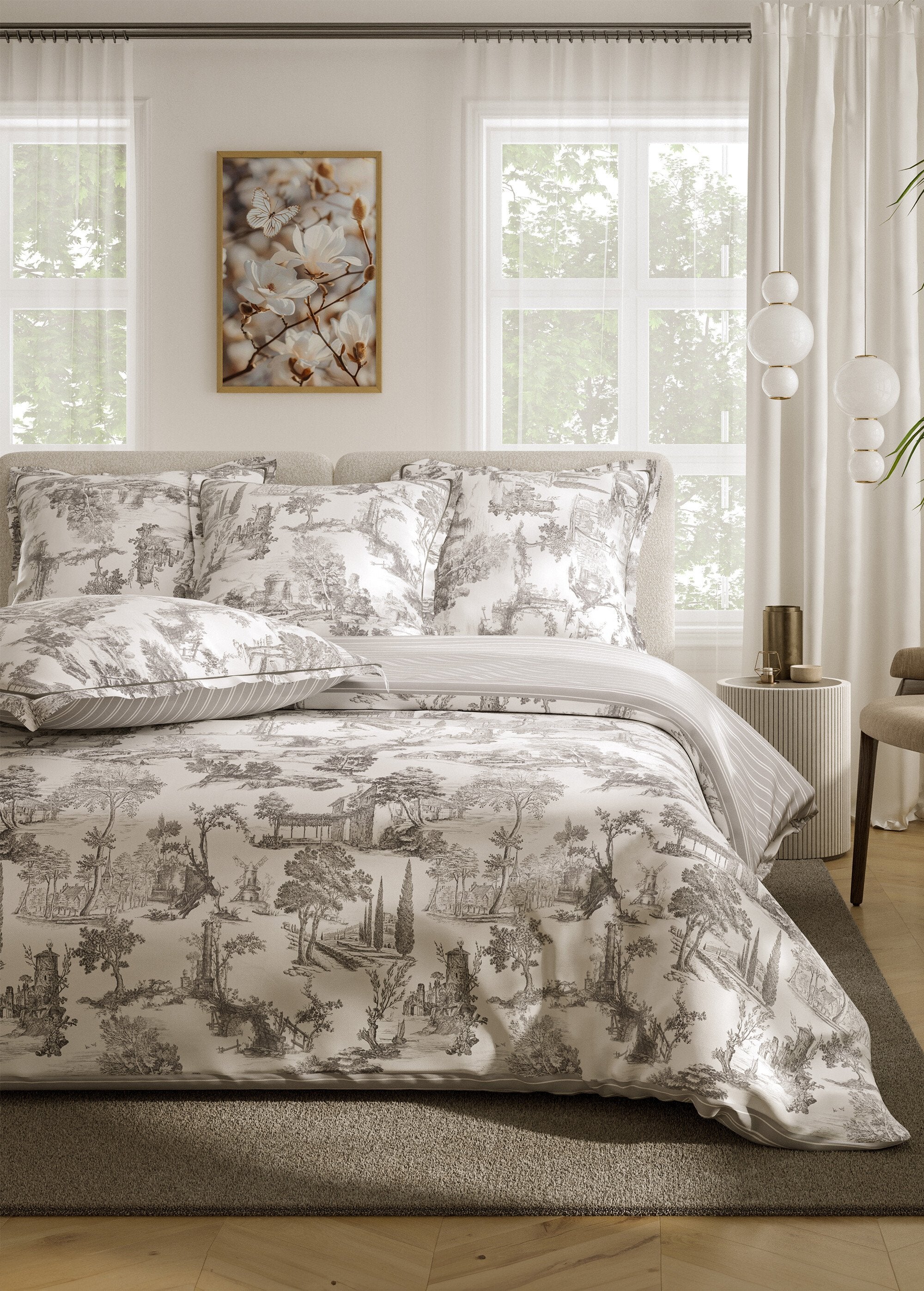 Discover our 3-piece percale bedding set, an ideal choice for transforming your bedroom into a haven of peace. Comprising a duvet cover and two pillowcases, this collection combines comfort and elegance. Percale, with its soft and breathable texture, guarantees peaceful nights. The cypress design brings a touch of freshness and modernity to your decor. Treat yourself to quality sleep while beautifying your space with this refined and timeless set.